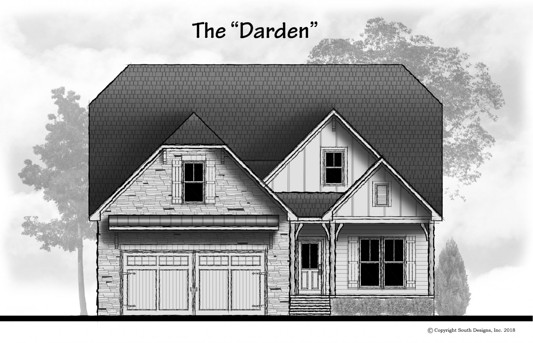 The “Darden” plan packs a lot of living space in under 2700 square feet. With a first floor owner’s suite, a first floor guest suite, open kitchen / family room and a formal Dining room, you get it all. There are two bedrooms upstairs and a playroom to go along with it. Many features in this design make this plan a complete package.